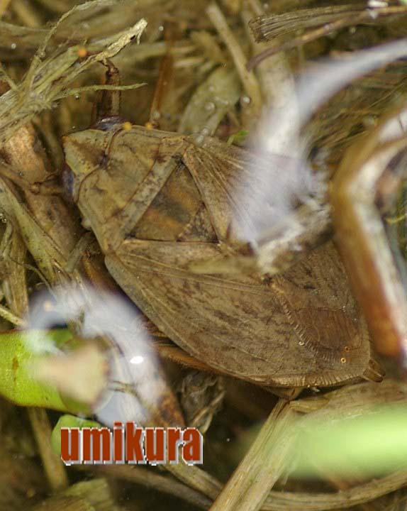 コオイムシはメスがオスの背中に卵を産み付け、その姿が子を背負っている様に見える為、この名前が付いたそうです。昔は結構みかけたんですけどねぇ。農薬や農地整備などの影響を受けやすい為、棲息数が減ってきているんでしょう。この昆虫が住んでいたなら自然度はまだ保たれているとみていいんでしょうね。いつまでも住み続けてね!