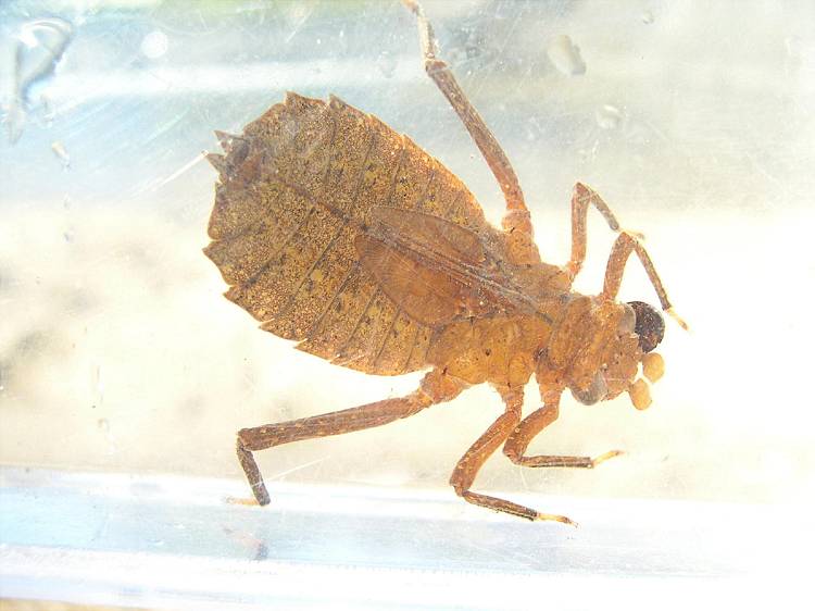コオニヤンマは海蔵川流域の結構広い範囲に生息しています。 御舘橋から末広橋まで調査するとどの場所でも網に入ってきます。 はじめてみた時は、ゴミが入ったと思ったくらい枯れた葉っぱそっくりです。 この平らなお腹からあのトンボのなお腹になるなんて本当に不思議ですね。