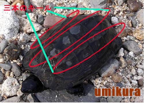 クサガメは捕まえると後ろ足の付け根付近から臭い匂い(生ゴミ臭?)を出すことから名前がついたそうです。海蔵川では代官橋付近で甲羅干ししているのをたまに見かけます。よく似た仲間にイシガメがいますが、甲羅のキール(隆起)が3本あるので見分けがつきます。子ガメはゼニガメと言われペットとして売られているみたいです。昔はゼニガメはイシガメの子ガメだったんですがね。この種も近年国外から輸入されたペットが無責任に放逐されて駆逐されています。