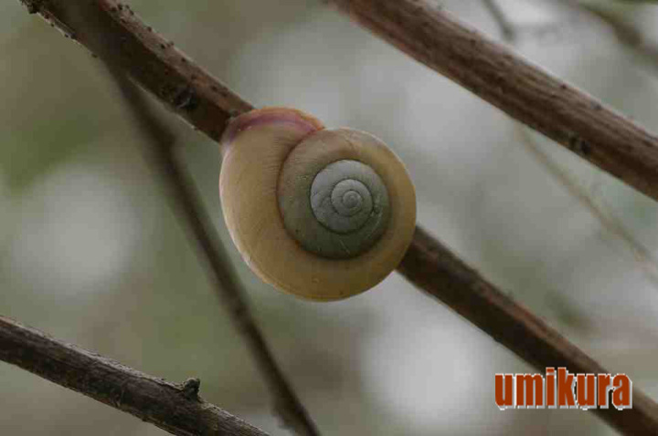 クチベニマイマイは樹上生活をするカタツムリです。名前の通り殻口が綺麗な紅色をしています。海蔵川では御舘橋の河畔林でよく見かけます。殻から体が出ていると「ウギャー」っと思う人もいますが、じっくり観察すると結構憎めないヤツになるかも・・・。