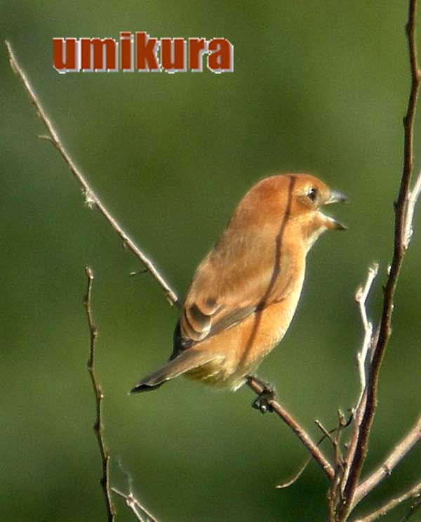 ‘小さな猛禽類‘ といわれるモズです。 海蔵川では秋になるとピャーピャーうるさく縄張りを主張する鳴き声が あちらこちらで聞こえます。 漢字では「百舌」と書くほど他の鳥の鳴きまねが上手です。川沿いの河岸林では「はやにえ」となったカエルやトカゲも見られます。