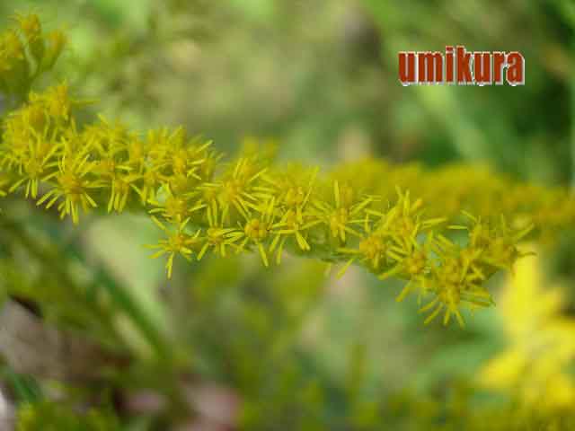 荒地に自生する代表選手のセイタカアワダチソウです。長い間、アレルギーや喘息の元凶として嫌われ者の代表にもなってしまったかわいそうな植物です。実際は花粉を撒き散らす様な受粉形態ではなく、昆虫などに花粉を運んでもらって受粉する植物です。 花の少ない晩秋にミツバチの蜜源として養蜂業者に利用されるそうです。結構いいヤツなのに・・・。もうそろそろ汚名返上されてもいいのでは?