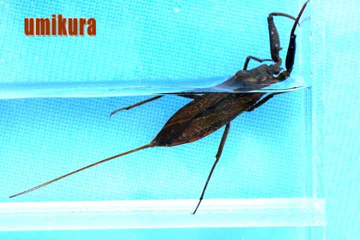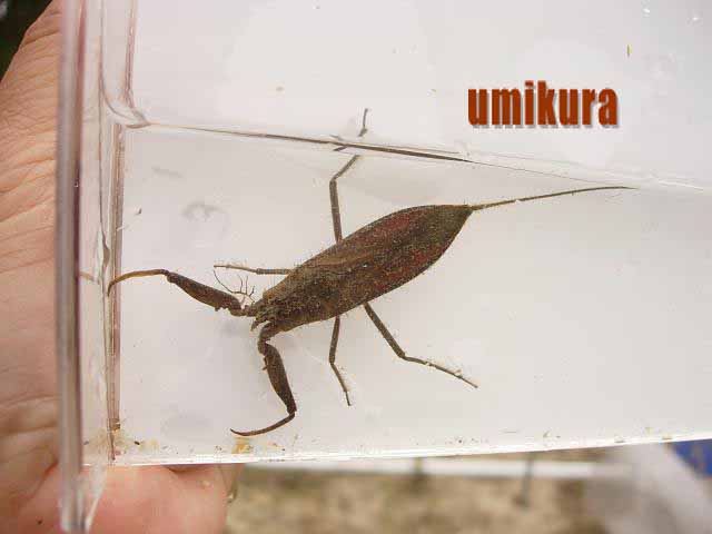 タイコウチは昔は水溜りにどこでもいたのに。 今はだいぶ生息数が減っているみたいですね。海蔵川では流れの緩い水際に生えてる草のところをガサガサするとはいることが多いです。子供たちに人気の昆虫です。英名はウォータースコーピオン(水のサソリ)というそうです。確かにサソリににていますね。