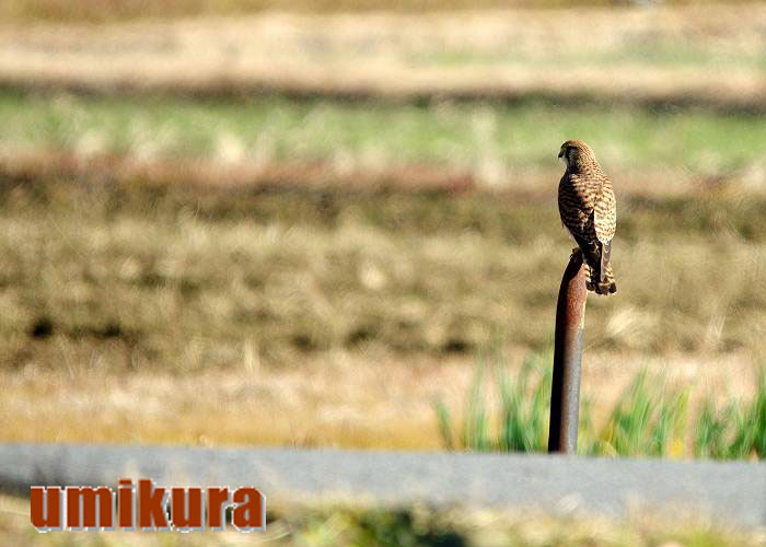 チョウゲンボウは冬になると里に降りてきて海蔵川周辺の農耕地などでハンティングをしているのを見かけます。 オオタカやノスリと違い、ハヤブサ科なので体はやや小さいけどホバリング(停空飛行)して急降下できるのが最大の武器でしょう。 実際の動きもオオタカ等に比べるとかなり小回りの効くすばらしい動きをします。 チョウゲンボウに限りませんが、タカ類は冬の雨上がりの晴れた日に農耕地の上空を注意深く見ると、結構な確率で出会えます。